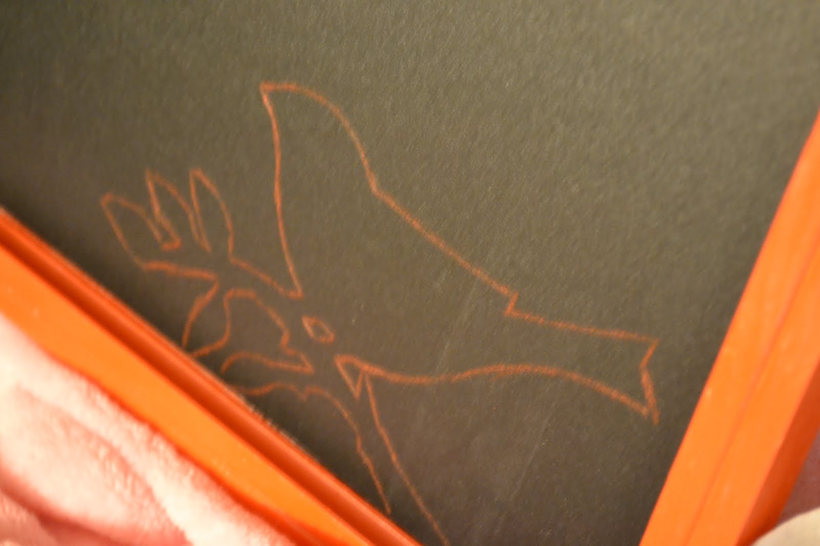 First thing's first, I bought a chalkboard from Hobby Lobby for $7.99 and spray painted it bright orange- I didn't think it would work at first, but thought, "What the hell, let's give it a go!"